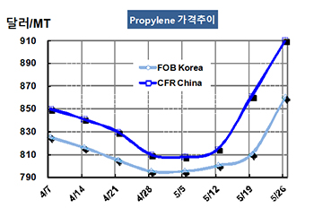 FOB Korea 860달러로 50달러 폭등 … 중국 PDH 3기 6-7월 정기보수