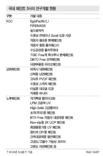 KCC, 삼화페인트, 노루페인트 등 국내 페인트 메이저 3사는 건설경기 호황으로 수익 악화를 만회한 것으로 파악된다.