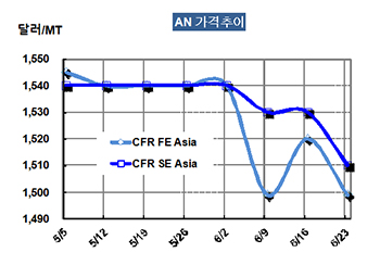 표, 그래프: <AN 가격추이> <화학저널 2017/06/29> |