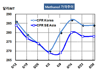 CFR Korea 284달러로 보합세 형성 … Methanex, 7월 ACP 320달러