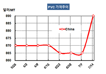 CFR China 890달러로 25달러 상승 … PVC-VCM 스프레드 290달러