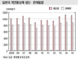 계면활성제의 생산·판매실적은 동북지방 대지진 영향으로 침체된 이후 회복세를 나타냈으나 최근 몇년 동안은 답보상태를 나타내고 있다.