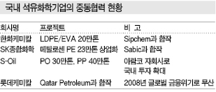 중동이 석유화학 투자를 확대하고 있으나 국내기업들과의 협력은 지지부진한 것으로 파악된다.