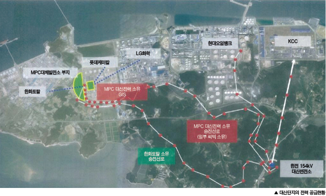 국가산업단지인 여수와 울산은 4-5개 발전소가 있고 각각 6개의 변전소를 통해 전력을 공급받고 있는 반면 대산단지는 전력공사 대산변전소로부터 개별 선로에 의존함에 따라 전력 수급에 어려움을 겪고 있다.