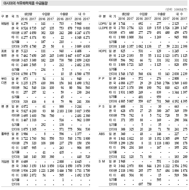 아시아 석유화학시장은 PE 공급과잉 전환이 확실시되고 있다.