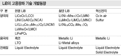 자동차용 LiB 기술은 1회 충전에 소요되는 코스트와 1회 충전당 주행 가능한 거리를 개선하는 것이 주요 과제로 에너지밀도 향상 및 코스트 절감이 요구되고 있다.
