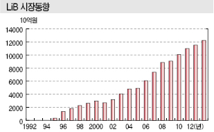 LiB는 1995년경부터 시장이 형성되기 시작해 2012년 세계 시장규모가 약 12조원에 달한 것으로 파악된다.