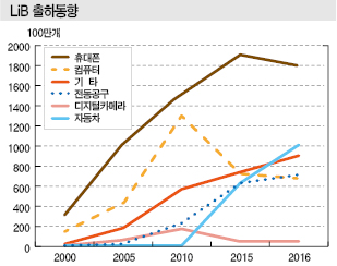 LiB는 휴대폰, 노트북 등 모바일·IT기기의 소형·경량 전원으로 사용되면서 성장을 이어가고 있다.