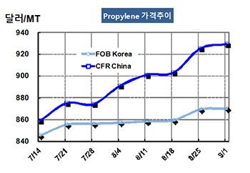 [석유화학] 프로필렌, 연휴 앞두고 약세 전환… | 2025-10-01 | ||