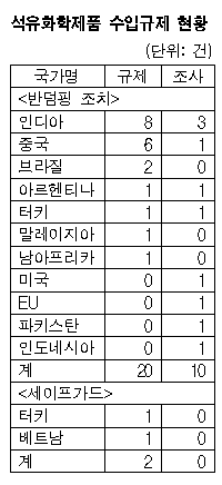 표, 그래프: <석유화학제품 수입규제 현황> <화학저널 2017/09/05> |
