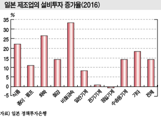 일본의 설비투자액은 2013년 감소했으나 2014년 3.7%, 2015년 8.8% 늘어나는 등 최근 들어 회복조짐을 보이고 있다.