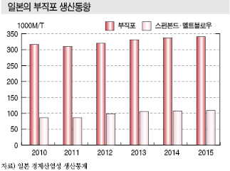 일본은 부직포 원료인 화학섬유 생산이 정체되고 있는 가운데 부직포는 안정된 성장세를 나타내고 있으며 스펀본드와 멜트블로우 방식이 주목받고 있다..