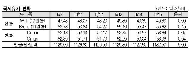 9월15일 국제유가는 글로벌 석유 수요 증가 전망치가 상향조정된 영향으로 상승했다.