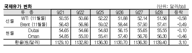[국제유가] 국제유가, 쿠르드 수출 재개 “급락” 2025-09-30
