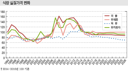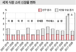 수요 안정화로 재고 증가 … 바이오연료도 정책지원 축소 세계적으로 식량 소비 증가율이 둔화되고 있다.