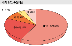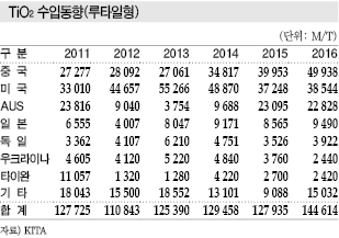 루타일형 TiO2는 수입제품 가운데 중국산이 3분의 1 이상을 차지하고 있다.