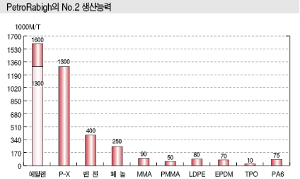 사우디의 PetroRabigh가 No.2 프로젝트 공사를 모두 마무리했다. 표, 그래프: <PetroRabigh의 No.2 생산능력> <화학저널 2017년 10월 23일> |
