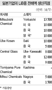 전해액은 4개 부재 중에서도 특히 사업환경이 좋지 않기 때문에 대기업간 협업이 두드러지며 운송코스트가 높아 수요지 인근에 생산거점을 구축하는 사례가 많고 중국을 중심으로 글로벌 전개가 가속화하고 있다.