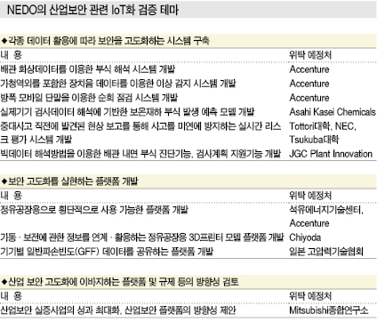 표, 그래프: <NEDO의 산업보안 관련 IoT화 검증 테마> <화학저널 2017년 12월 4일> |