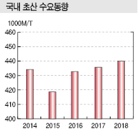 초산(Acetic Acid)은 2017년 하반기 강세가 이어지고 있다. 표, 그래프: <국내 초산 수요동향> <화학저널 2017년 12월 11일> |