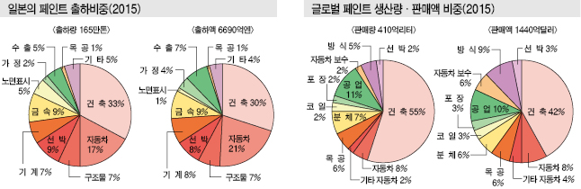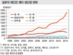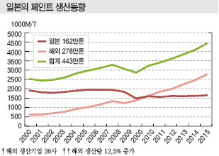 글로벌 페인트 시장은 일본이 주춤하고 있는 사이 한국, 인디아, 중국 등이 부상하고 있다.