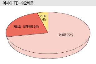 TDI는 가구, 자동차용 연질폼, 페인트 원료 수요가 95% 이상을 차지하고 있어 경기변동에 크게 좌우되는 것이 특징이다.