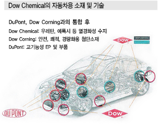 특히, DuPont은 파워트레인과 전자계에, Dow Chemical은 내·외장재와 구조재에 강점을 가지고 있으며 완전 자회사화한 Dow Corning의 실리콘(Silicone) 사업이 추가됨으로써 자동차와 관련된 다양한 소재 분야에서 영향력이 향상될 것으로 예상된다.