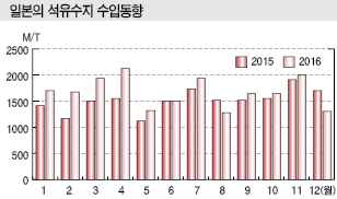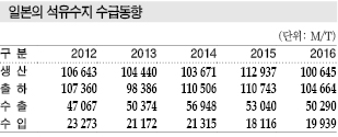 일본은 석유수지 수출이 2015년에 이어 2016년에도 감소세를 나타냈다.