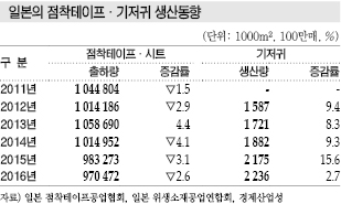 점착테이프는 통신판매 보급으로 포장박스용 수요가 확대됐으나 최근 들어 감소세로 전환됐다.