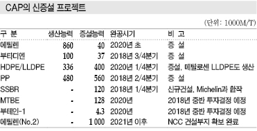 CAP는 에틸렌 수요 호조 등으로 영업실적이 대폭 호전돼 다양한 신증설 투자에 나서고 있다.
