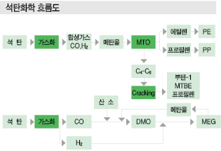 석탄화학은 크게 CTO와 MTO로 구분되며 CTO는 석탄, MTO는 메탄올을 원료로 사용하고 메탄올은 수입을 중심으로 외부에서 조달하고 있다.
