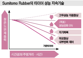 표, 그래프: <Sumitomo Rubber의 타이어 성능 지속기술>