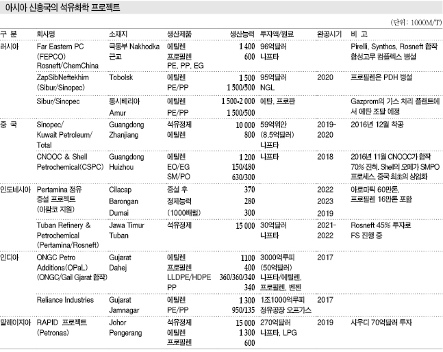 또 Rosneft는 러시아 극동지역인 Nakhodka 근교에서 계획하고 있는 FEPCO 프로젝트에 대해 ChemChina의 투자를 유치해 추진체제를 구축했으며 폴리머 및 합성고무를 생산해 아시아 시장에 공급할 방침이다.