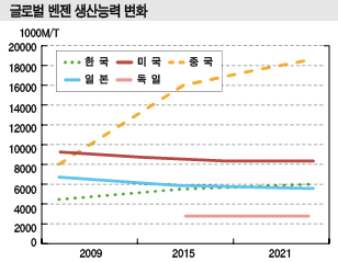 프로필렌과 벤젠(Benzene)은 세계 1위로 2위인 미국과도 큰 격차를 벌릴 것으로 예상되고 있다.
