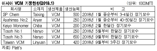 표, 그래프: <아시아 VCM 가동현황(2018.1)>