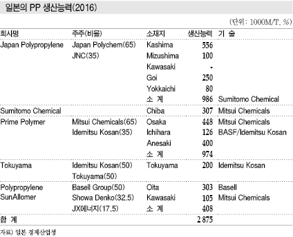 일본 PP 생산기업들은 내수 수준으로 생산능력을 축소하고 있다.