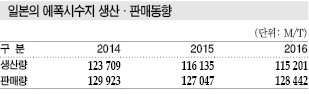 경제산업성에 따르면, 2016년 에폭시수지 판매량은 12만8442톤으로 1.1% 늘어나며 6년만에 증가세로 전환됐다. 생산량은 11만5201톤으로 0.8% 감소했으나 액상 수입이 3만7355톤으로 3.6%, 고형도 1만1051톤으로 9.2% 늘어나며 총 4만8406톤으로 4.8% 증가함에 따라 전체적으로는 수요가 신장한 것으로 판단된다.