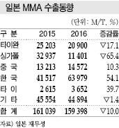 일본은 2016년 MMA 생산량이 51만7817톤으로 전년대비 0.1% 증가하는데 그쳤으나 대규모 정기보수 및 플랜트 트러블의 영향으로 공급이 부족했다.