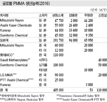 일본은 PMMA 성형소재를 주로 자동차용으로 투입하고 있다.