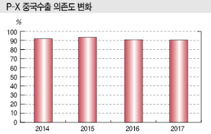 P-X 수출은 2014년 397만2461톤에서 2015년 567만1993톤, 2016년 643만4612톤으로 급증했으며 2017년에는 700만톤을 넘어섰다.