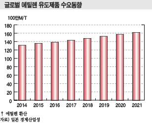 일본은 에틸렌 수요가 2년 연속 마이너스 신장했으나 감소폭이 축소돼 시장 환경이 개선되고 있고, 2017년부터는 환율이 엔저로 전환됨에 따라 수입제품을 일본산으로 대체하는 움직임까지 나타나고 있다.