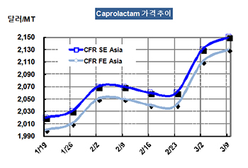 표, 그래프: <Caprolactam 가격추이> <화학저널 2018/03/15> |