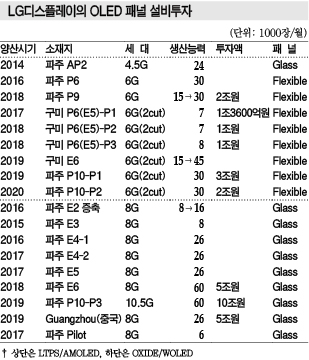 또 플래스틱 기판을 사용하는 OLED(P-OLED) 등 신기술 및 설비투자에 5조5000억원 이상을 투입할 계획이다. 투자액은 2016년에 비해 약 1조원 이상 늘어난 것으로 추정되고 있다.
