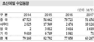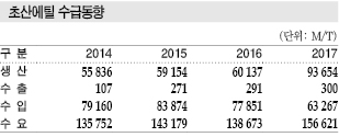 2018년에는 한국알콜이 10만톤 플랜트를 풀가동하면 수입량이 4만-5만톤대로 떨어질 가능성이 높아지고 있다.