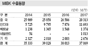 중국 수출은 매년 2만5000-2만6000톤에 달했으나 2018년 반덤핑관세가 부과돼 감소세 전환이 확실시된다.