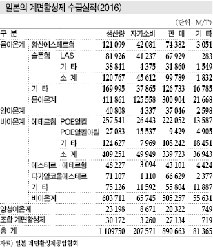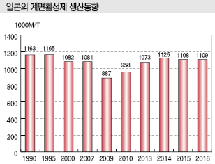 일본은 계면활성제 수요가 꾸준히 신장하고 있다.