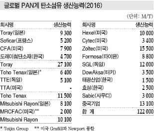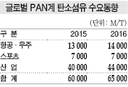 글로벌 PAN(Polyacrylonitrile)계 탄소섬유 수요는 2016년 6만5000톤으로 전년대비 8% 증가한 것으로 추정된다.