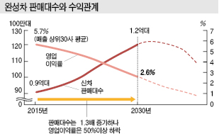 소형 자동차, 저가 자동차가 늘어나는 한편 자동차에는 부가가치가 높은 부품 및 시스템이 탑재되기 때문에 수익 감소가 불가피해질 것으로 파악된다.