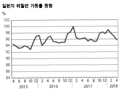 일본은 에틸렌(Ethylene) 생산량이 12% 줄어든 것으로 파악된다.