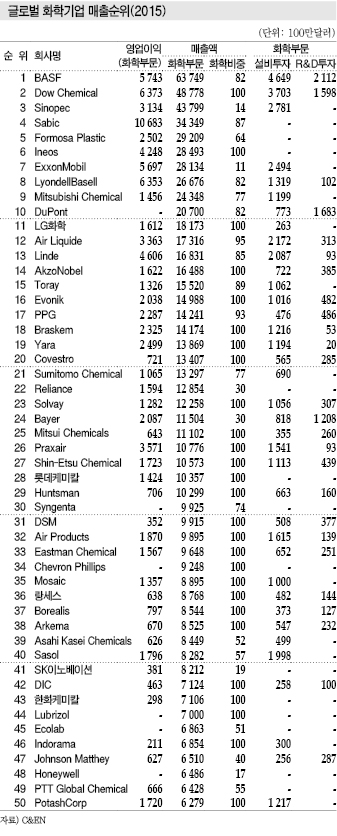 특수화학은 시장구조 재편이 가속화되고 있다.